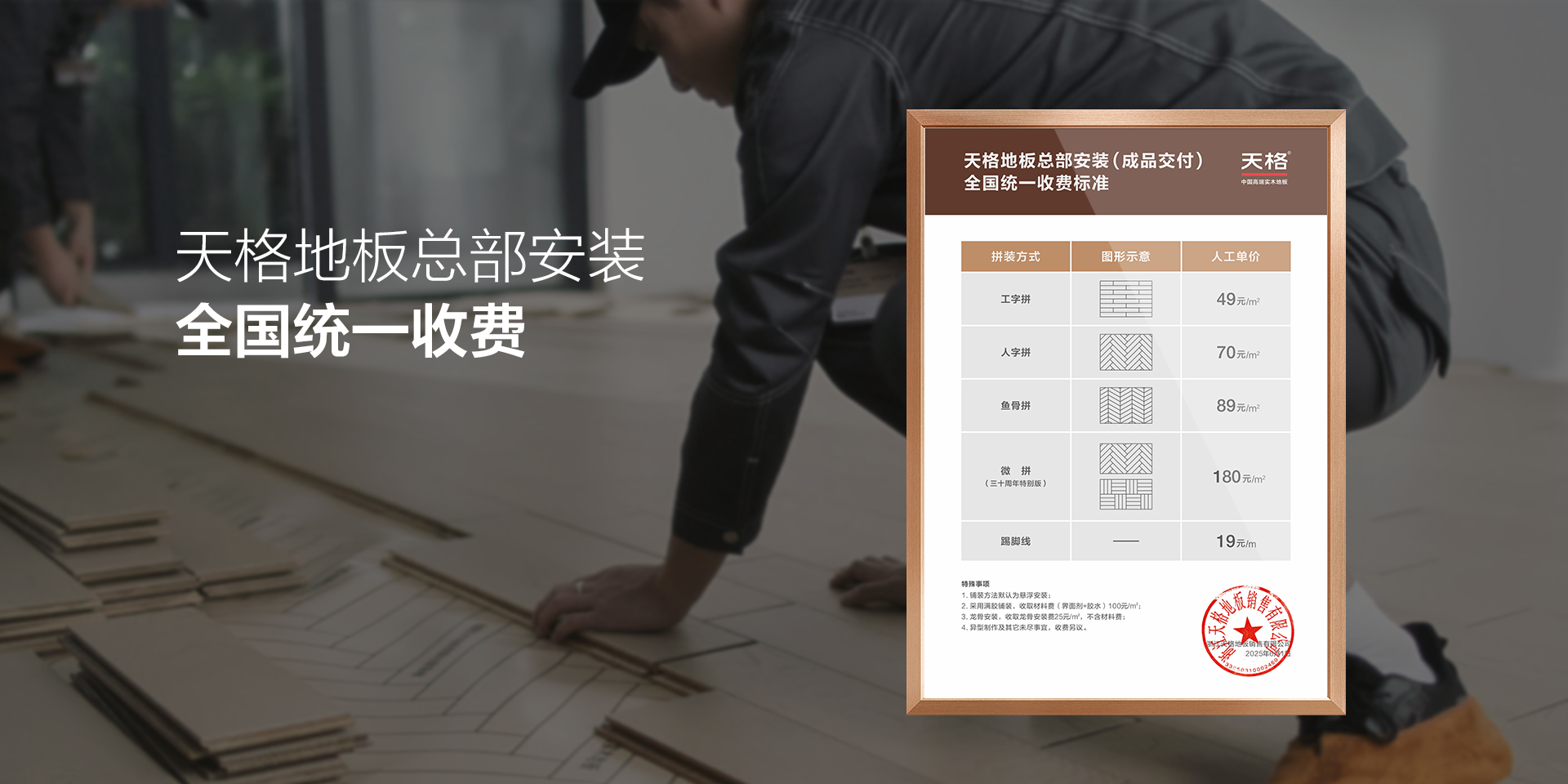 天格地板公布總部負責安裝(成品交付)全國統一收費標準